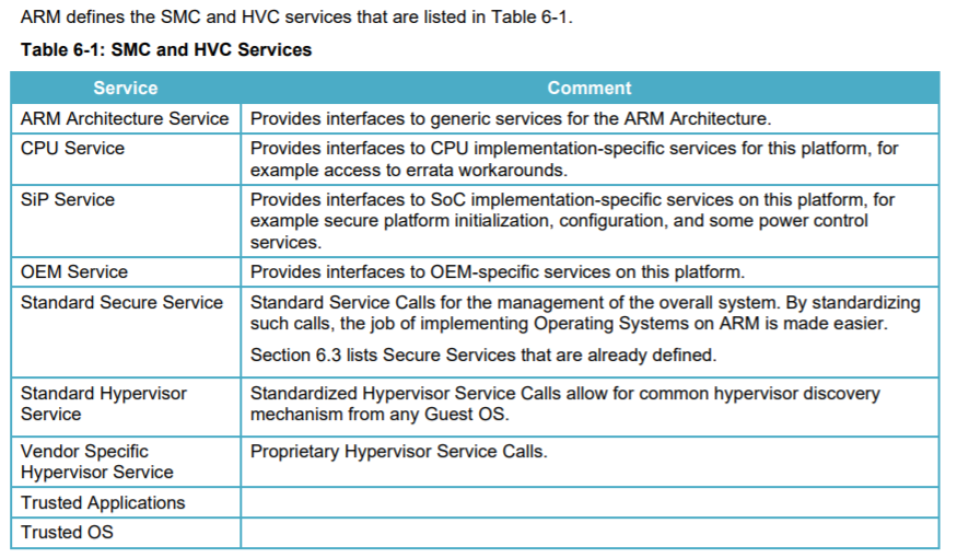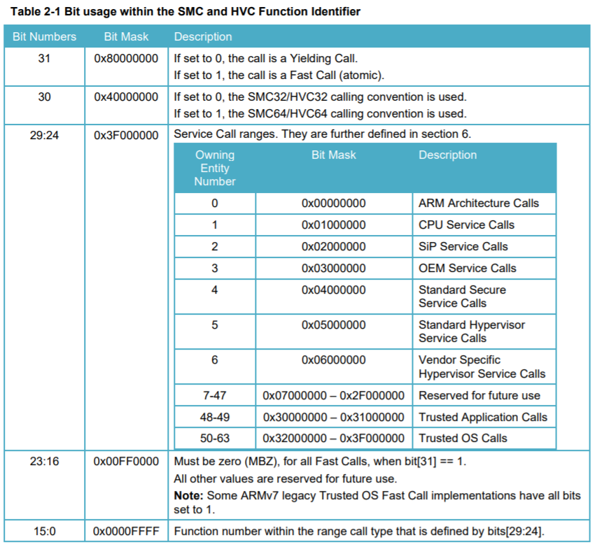 ARM에서는 SMC Call / HVC Call에 대한 규약을 미리 정해두었음.