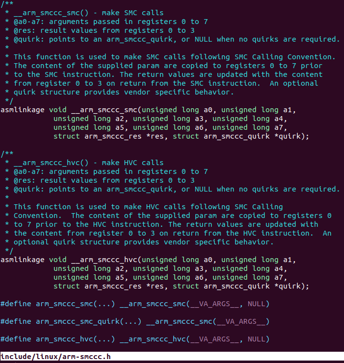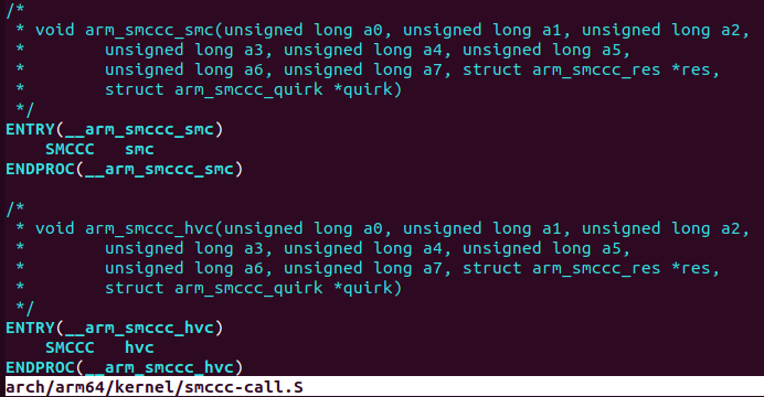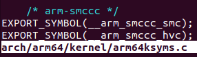 SMC와 HVC(Hypervisor call) 가 정의되고 Export 됨.