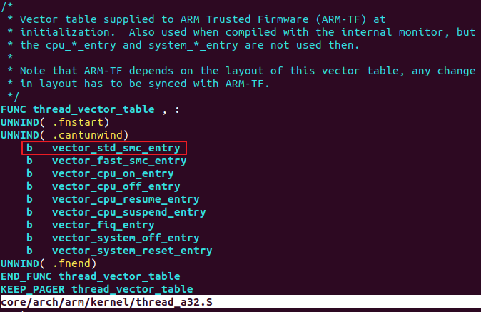2) Vector table 에 등록되어있으므로, SMC 발생시 해당 함수가 실행.