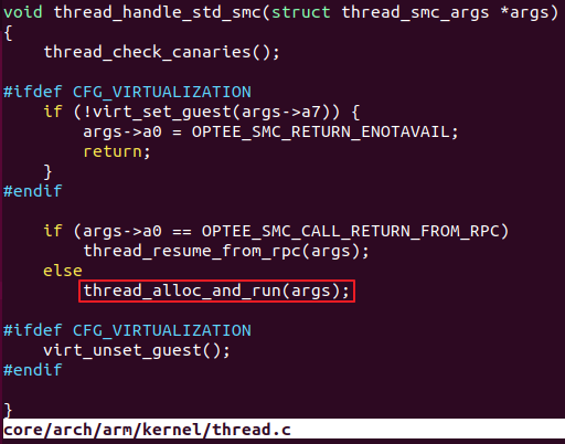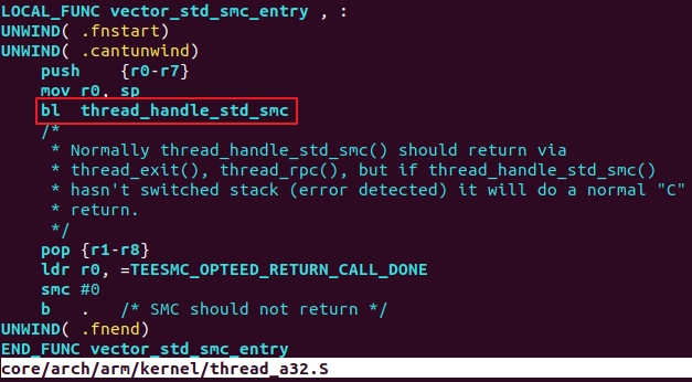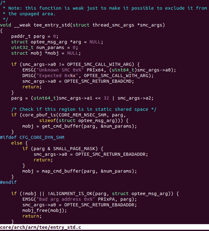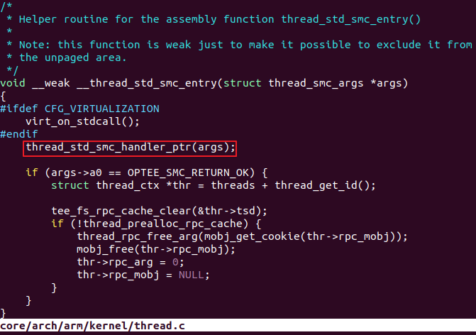 초기화 과정에서 thread_std_smc_handler_ptr이 tee_entry_std이므로 아래 함수가 실행.
